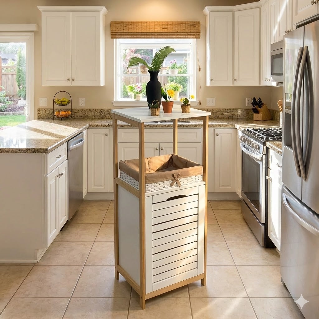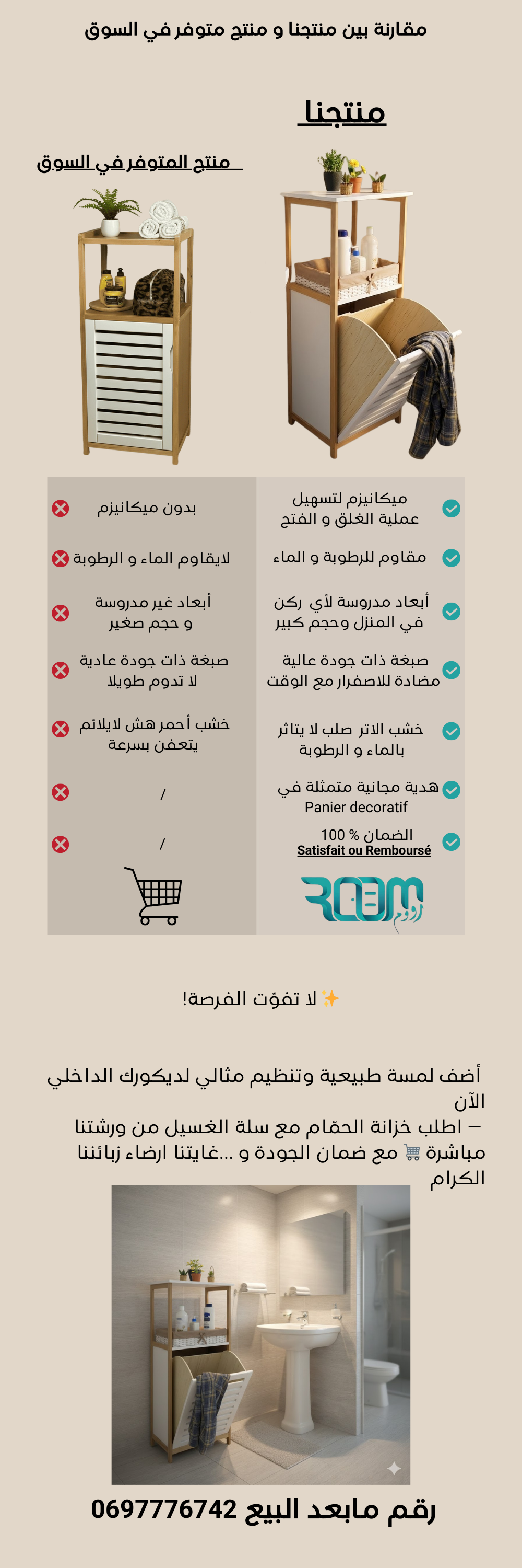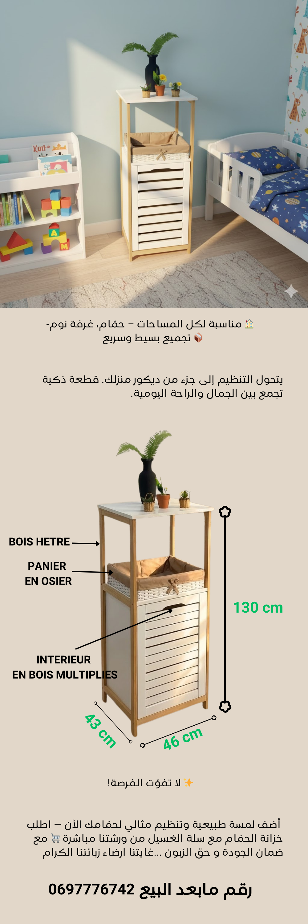 Meuble salle de bain et panier à linge en bois hêtre